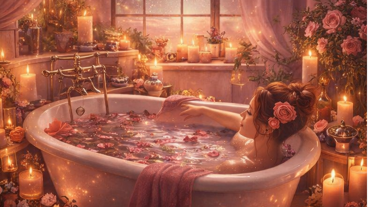 ✨ Mon sel de bain aux pétales de rose accompagne parfaitement ce moment.